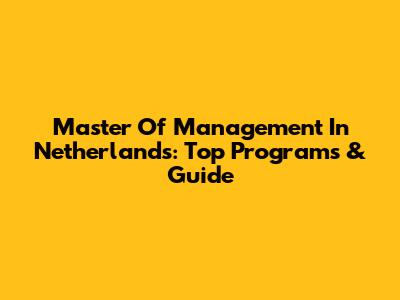 Master Of Management In Netherlands: Top Programs & Guide
