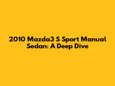 Hey guys! Let's get into the nitty-gritty of the 2010 Mazda3 S Sport Manual Sedan. This car isn't just another set of wheels; it's a statement. If you're hunting for a ride that blends sporty handling with everyday practicality, this might just be your sweet spot. We're talking about a vehicle that offers a unique driving experience, especially with that manual transmission. So, buckle up as we explore what makes this particular model year and trim level so special.