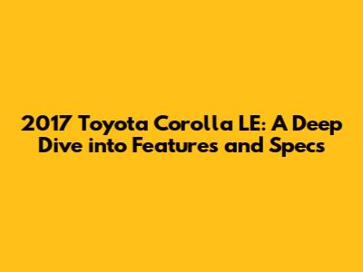 Hey guys! Let's talk about the 2017 Toyota Corolla LE – a car that's known for its reliability, fuel efficiency, and practicality. If you're in the market for a dependable sedan, the Corolla LE is definitely worth considering. In this article, we're going to break down all the key features and specs so you can make an informed decision. We'll cover everything from performance and fuel economy to interior comfort and technology, as well as safety features. By the end, you'll have a solid understanding of what the 2017 Corolla LE has to offer. So, buckle up and let's get started!
