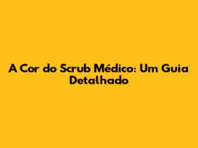 A Cor Do Scrub Médico: Guia Completo E Atualizado