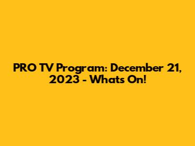 PRO TV Program: December 21, 2023 - What's On!