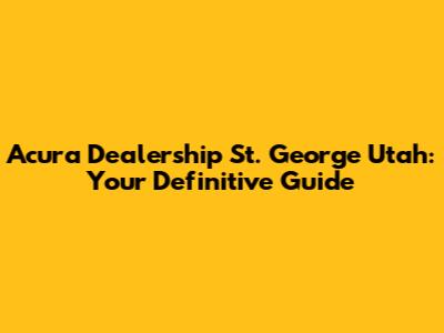 Hey guys! If you're looking for an Acura dealership in St. George, Utah, you've come to the right place. Finding the right dealership can be a real pain, so I'm here to break down everything you need to know. We'll dive into the best places to buy, the services they offer, and what makes each dealership stand out. Whether you're a seasoned Acura enthusiast or a first-time buyer, this guide is packed with info to help you make the best decision for your needs. Buckle up, and let’s find you the perfect Acura experience in St. George!