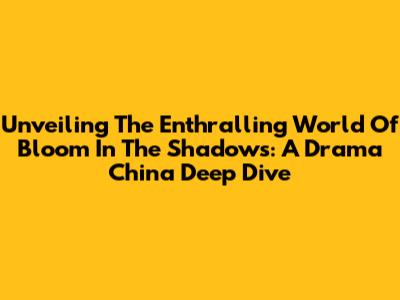 Unveiling The Enthralling World Of Bloom In The Shadows: A Drama China Deep Dive