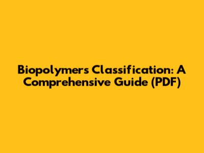 Biopolymers Classification: A Comprehensive Guide (PDF)
