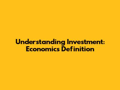 Understanding Investment: Economics Definition