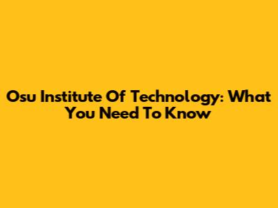 Osu Institute Of Technology: What You Need To Know