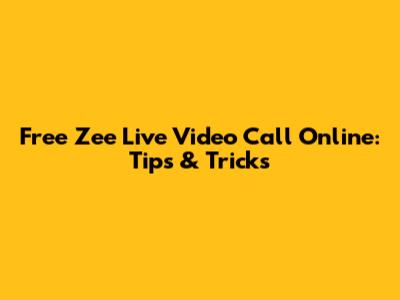 Free Zee Live Video Call Online: Tips & Tricks