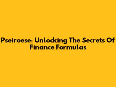 Pseiroese: Unlocking The Secrets Of Finance Formulas