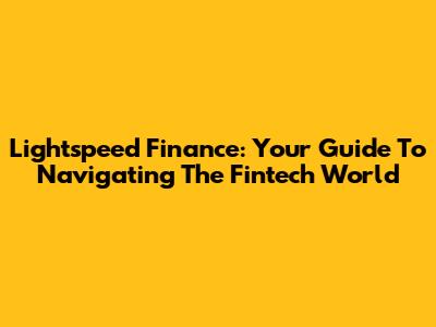 Lightspeed Finance: Your Guide To Navigating The Fintech World