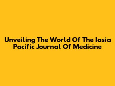 Unveiling The World Of The Iasia Pacific Journal Of Medicine
