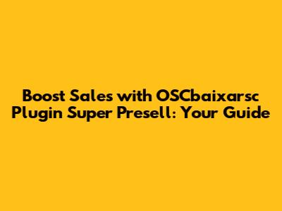 Hey guys! Ready to supercharge your online store and watch those sales figures soar? If you're using OpenCart, then you're in the right place! We're diving deep into the OSCbaixarsc Plugin Super Presell, a powerful tool designed to help you boost your preselling game. We'll cover everything from what it is and how it works, to the amazing benefits it offers and how to install it. Buckle up, because by the end of this guide, you'll be well on your way to maximizing your revenue with this fantastic plugin.