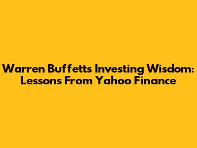 Warren Buffett's Investing Wisdom: Lessons From Yahoo Finance