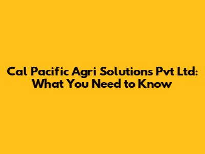 Cal Pacific Agri Solutions Pvt Ltd: What You Need To Know