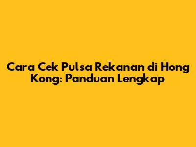 Cek Pulsa Rekanan Di Hong Kong: Panduan Lengkap