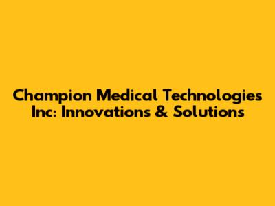 Champion Medical Technologies Inc: Innovations & Solutions