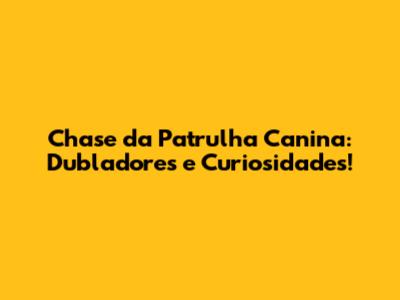E aÃ, pessoal! Gostaram de conhecer mais sobre o Chase e os talentosos dubladores que dão voz a esse personagem tão especial? Espero que sim! O Chase é um herói que nos ensina muito sobre coragem, amizade e perseverança. E a dublagem é uma arte que merece ser valorizada e reconhecida, pois é ela que nos permite desfrutar das aventuras do Chase em nosso idioma.