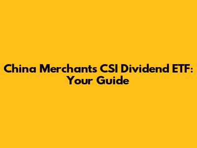 China Merchants CSI Dividend ETF: Your Guide
