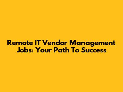 Remote IT Vendor Management Jobs: Your Path To Success