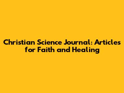 Christian Science Journal: Articles For Faith And Healing