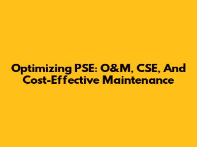 Optimizing PSE: O&M, CSE, And Cost-Effective Maintenance