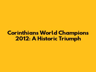 In conclusion, the Corinthians World Champions 2012 victory was a monumental achievement, a testament to the team's skill, determination, and tactical brilliance. It remains a cherished memory for fans and a significant chapter in football history. The Timão proved that with unity, passion, and strategic planning, anything is possible. The Corinthians World Champions 2012 story will continue to inspire generations to come.