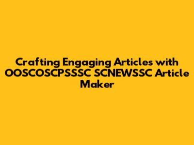 Leveraging OOSCOSCPSSSC SCNEWSSC Article Maker