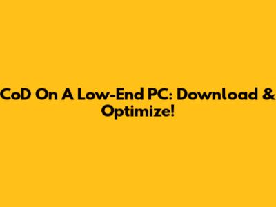 CoD On A Low-End PC: Download & Optimize!