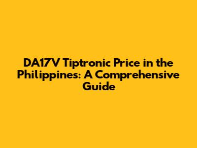 Hey guys! Let's dive into the fascinating world of the DA17V Tiptronic and explore its pricing landscape here in the Philippines. This guide is designed to give you a comprehensive understanding of everything you need to know about this vehicle, from its features and performance to where to find the best deals. Whether you're a potential buyer, a car enthusiast, or just curious, this article will equip you with valuable insights into the DA17V Tiptronic's market presence in the Philippines.
