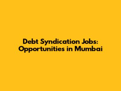 Are you seeking debt syndication jobs in Mumbai? Mumbai, being the financial capital of India, offers numerous opportunities in the field of debt syndication. This article explores the landscape of debt syndication jobs in Mumbai, providing insights into roles, required skills, and how to navigate this dynamic job market. If you're aiming to carve out a successful career in finance, understanding the nuances of debt syndication is crucial.