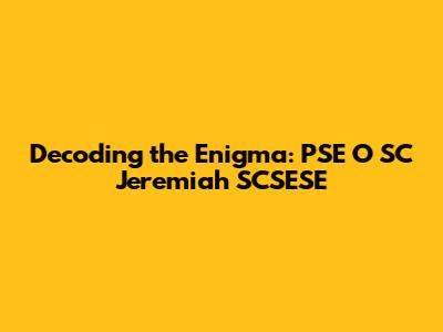 Unraveling PSE O SC Jeremiah SCSESE
