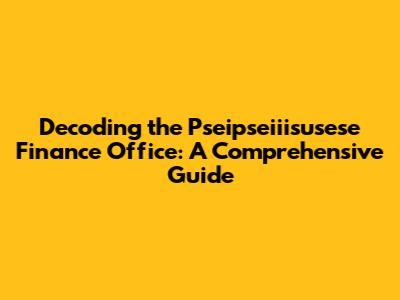 Hey everyone! Today, we're diving deep into the world of the Pseipseiiisusese Finance Office. Now, I know the name might seem a bit…unique, but trust me, understanding this entity is super important. We will break down everything you need to know, from its core functions to its potential impact on you, so stick around and you'll become a pro in no time! Let's get started.