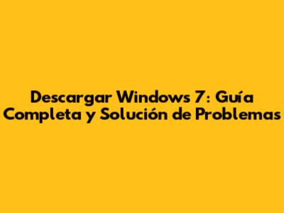 Descargar Windows 7: Guía Completa Y Solución De Problemas