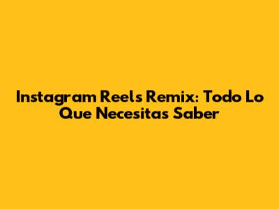 Instagram Reels Remix: Todo Lo Que Necesitas Saber