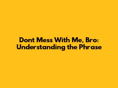 Don't Mess With Me, Bro: Understanding The Phrase