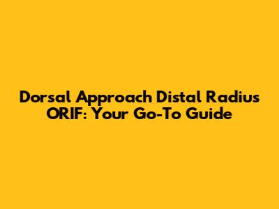 Hey guys! Ever heard of a dorsal approach distal radius ORIF? Sounds a bit like medical jargon, right? Well, it is! But don't worry, we're going to break it down in a way that's easy to understand. This article is your comprehensive guide to understanding what a dorsal approach distal radius ORIF is all about. We'll dive into the details, from what it means, what happens during the surgery, recovery, and what you can expect. Buckle up, and let's get started!