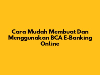 Cara Mudah Membuat Dan Menggunakan BCA E-Banking Online