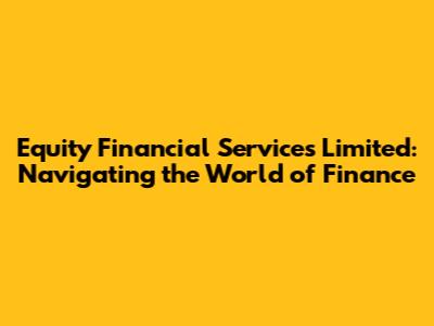 Hey guys! Ever wondered about the ins and outs of equity financial services? It can seem like a complex world, but trust me, it's super important for understanding investments and how businesses grow. So, let's dive into the details of Equity Financial Services Limited, breaking down what they do and why it matters.