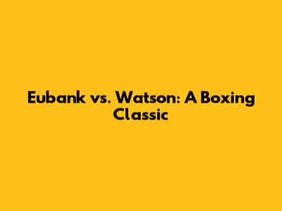 How did the rivalry affect Eubank and Watson's relationship? The rivalry ultimately evolved into a friendship. After the tragedy of the second fight, Eubank and Watson developed a deep respect and admiration for each other.