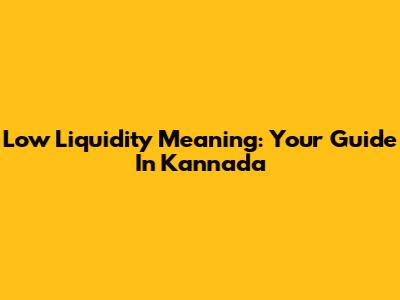 Low Liquidity Meaning: Your Guide In Kannada