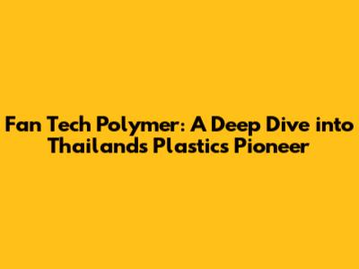 Fan Tech Polymer: A Deep Dive Into Thailand's Plastics Pioneer