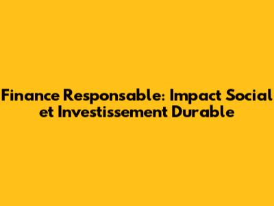 Finance Responsable: Impact Social Et Investissement Durable