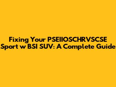 Troubleshooting Tips for Your PSEIIOSCHRVSCSE Sport w BSI SUV