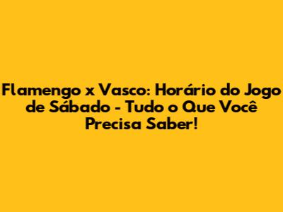 Flamengo X Vasco: Horário Do Jogo De Sábado - Tudo O Que Você Precisa Saber!