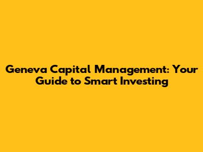 Geneva Capital Management: Your Guide To Smart Investing