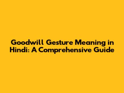 Goodwill Gesture Meaning In Hindi: A Comprehensive Guide