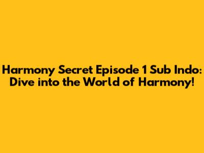 Hey guys! Are you ready to dive into the captivating world of Harmony Secret? If you've been searching high and low for Harmony Secret Episode 1 with Indonesian subtitles, you've landed in the right place. In this article, we're going to explore everything you need to know about this exciting series, where to watch it, and why it's become such a hit. So, grab your snacks, get comfy, and let's get started!