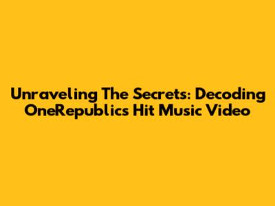 Unraveling The Secrets: Decoding OneRepublic's Hit Music Video