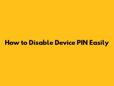 Why Disable Your Device PIN?
