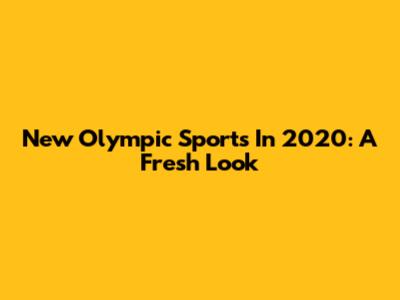 New Olympic Sports In 2020: A Fresh Look