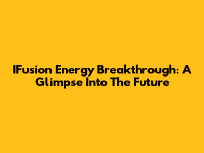 IFusion Energy Breakthrough: A Glimpse Into The Future
